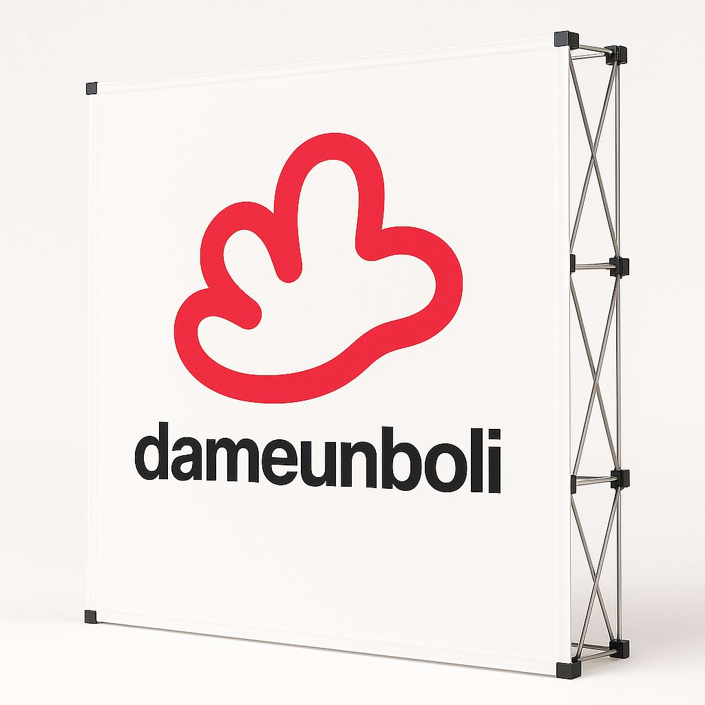 Su sistema plegable facilita el transporte y el montaje sin necesidad de herramientas. Pese a su ligereza, una vez desplegado cubre una gran superficie con presencia firme y profesional. Además, su valor se multiplica gracias al efecto viral: cada foto tomada frente al fondo se convierte en una forma de difusión de tu marca o mensaje.